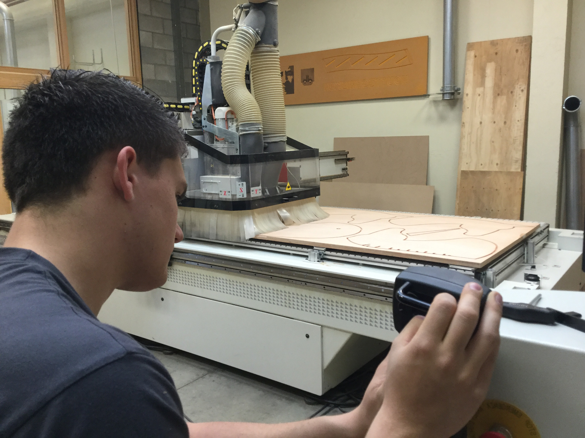 Paneel klaarleggen op de CNC machine. Zodat het paneel kan opgespannen worden op de CNC machine.